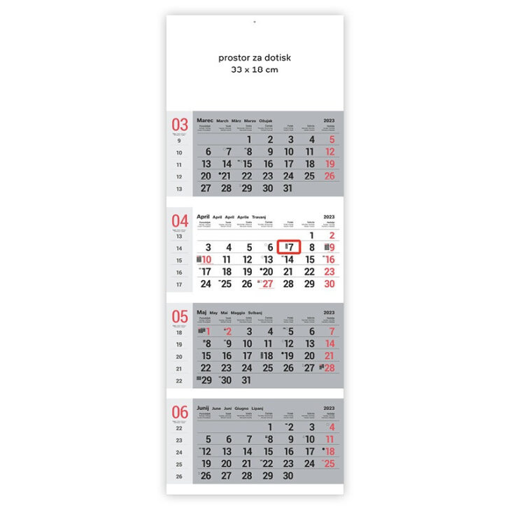 Koledar stenski 4-delni posloven lepljen siv 2023