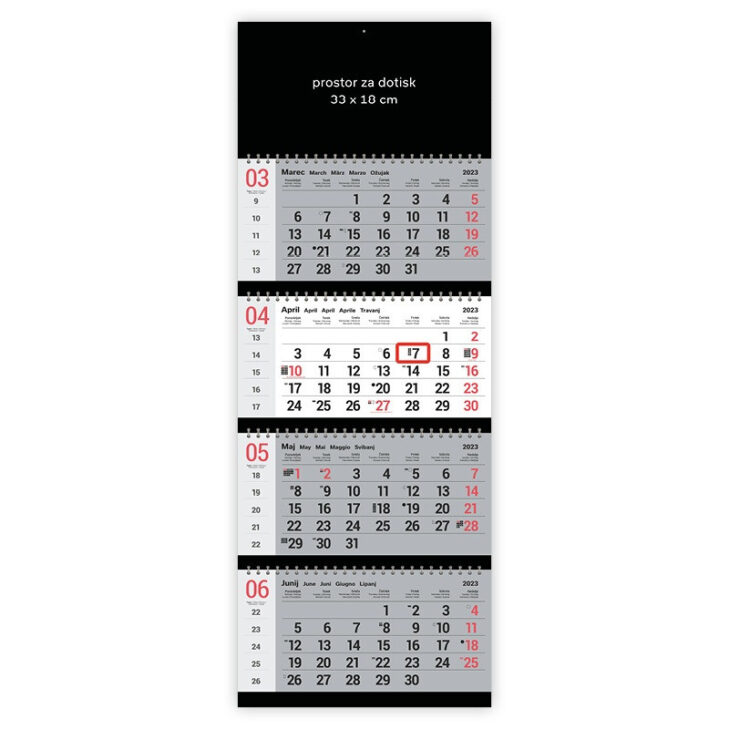 Koledar stenski 4-delni posloven špirala črn 2023