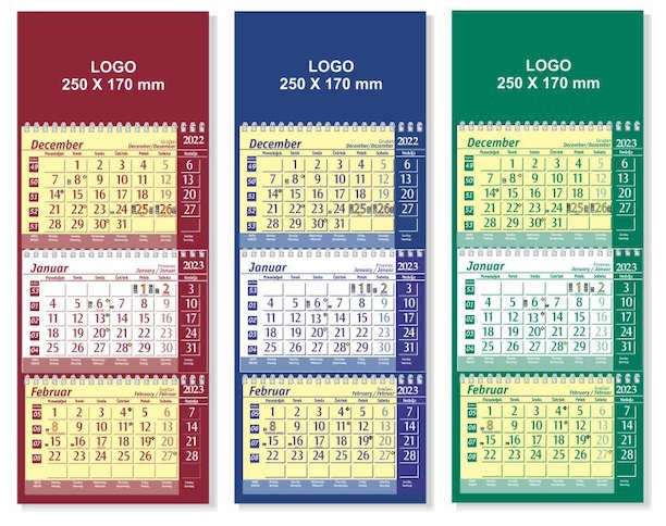 Koledar stenski poslovni 3-delni špiralni 2022