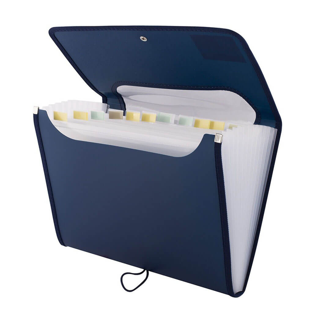 - v notranjosti ima oddelke za dokumente z zamenljivimi nalepkami